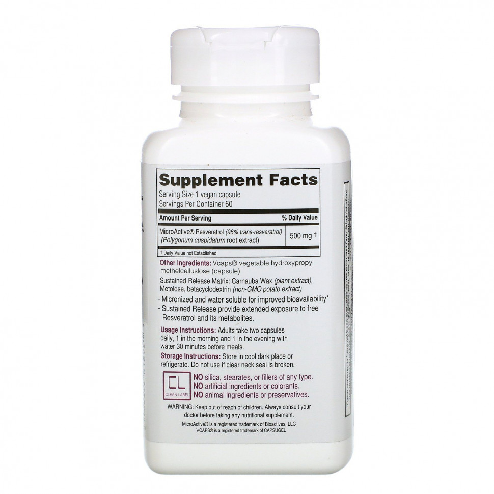Длительное высвобождение обеспечивает продолжительное воздействие свободного ресвератрола и его метаболитов.