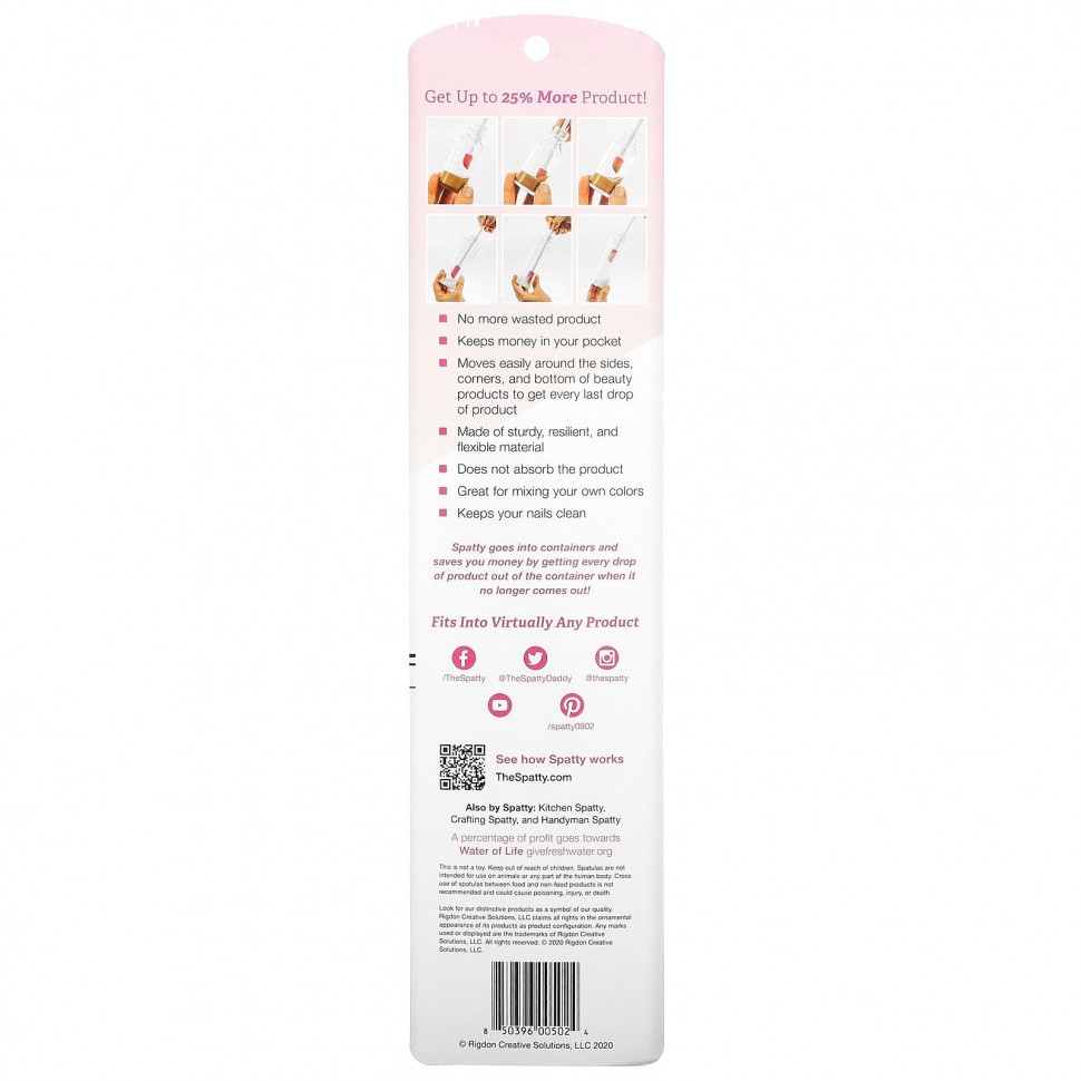 Spatty помещается в контейнеры и экономит ваши деньги, извлекая каждую каплю продукта из контейнера, когда он больше не выходит!