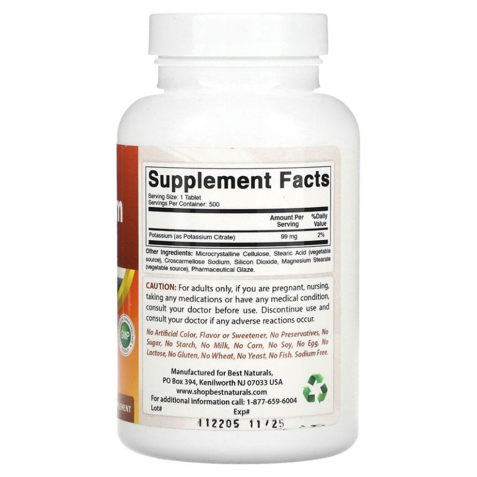 Best Naturals, Цитрат калия, 99 мг, 500 таблеток