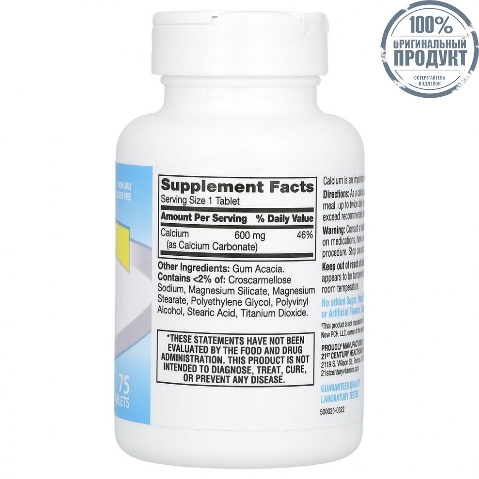 21st Century, добавка с кальцием 600, 75 таблеток
