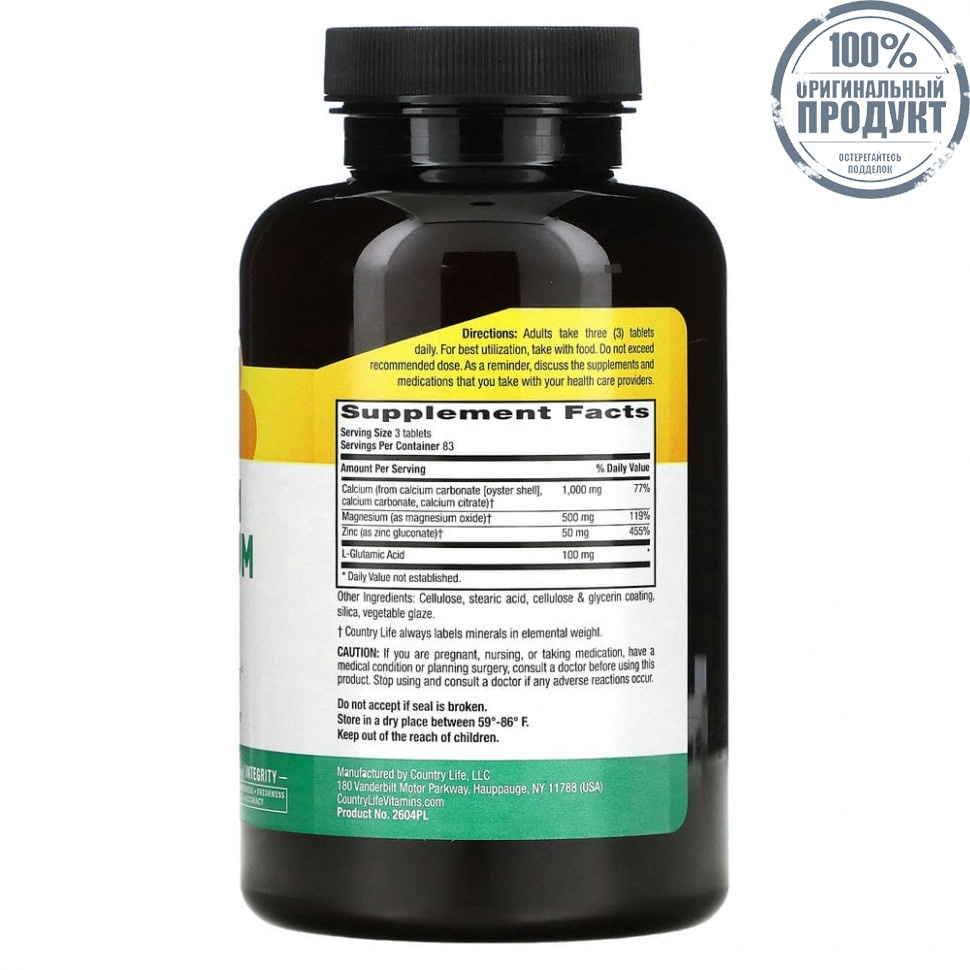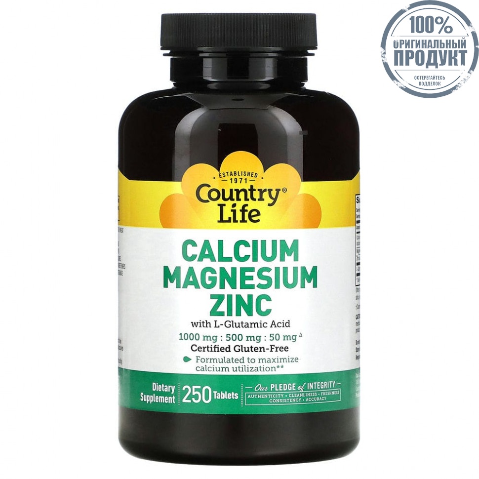Country Life, кальций, магний и цинк, 250 таблеток