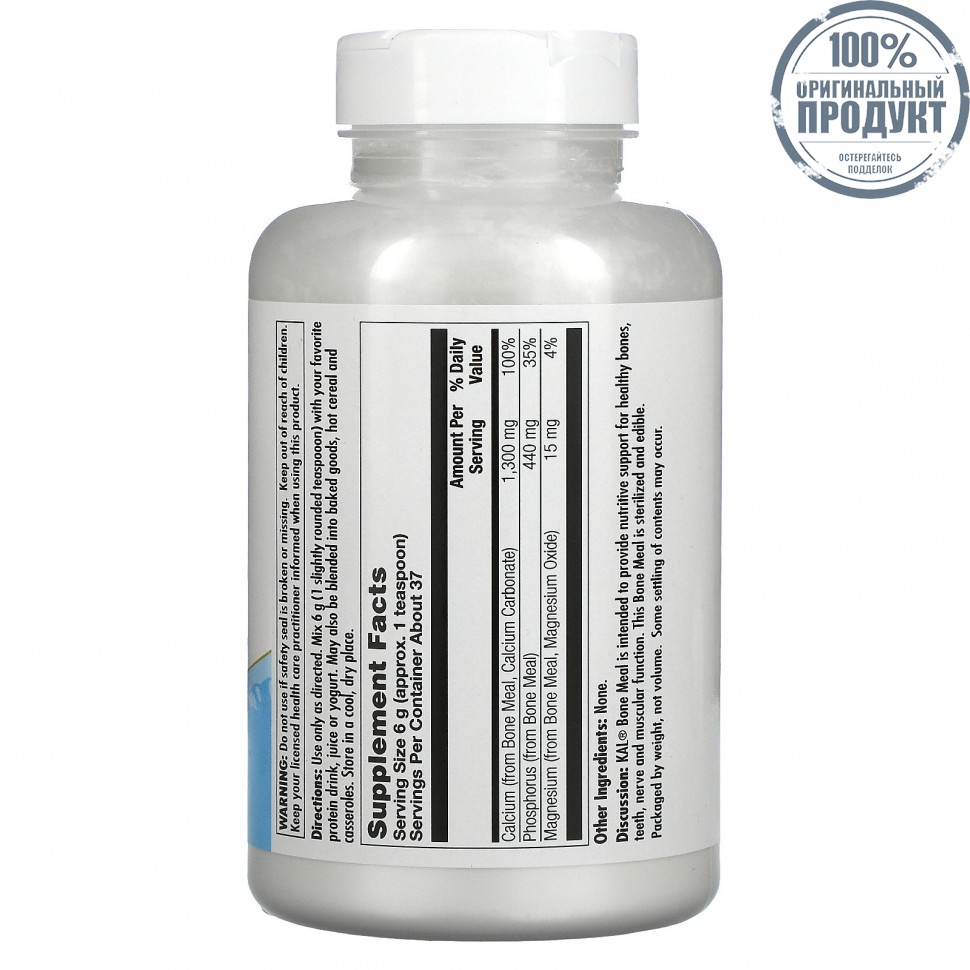 Описание. Костная мука KAL® предназначена для обеспечения питательной поддержки и здоровой работы костей, зубов, нервной и мышечной систем. Эта костная мука очищена и съедобна.