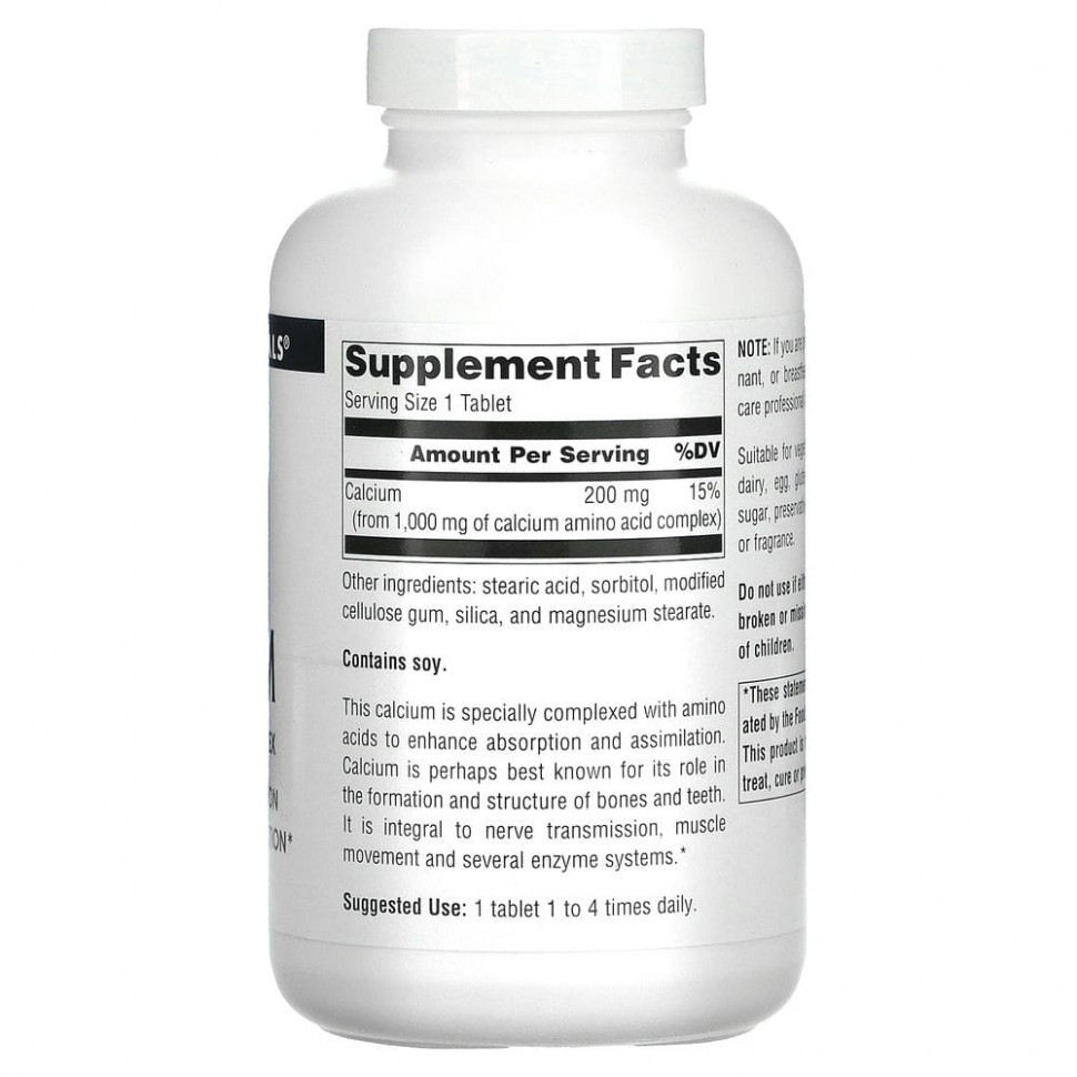Этот кальций специально связан (хелатирован) с аминокислотами для лучшего всасывания и усвоения. Кальций играет важную роль в формировании костей и зубов. Он участвует в передаче нервных импульсов, мышечных движений и в работе нескольких ферментных систем.