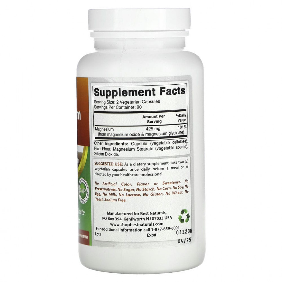 Best Naturals, Магний, 425 мг, 180 вегетарианских капсул