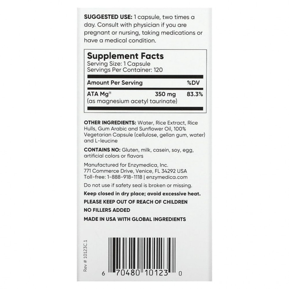 Элемент каталога Enzymedica, Магний, для разума, 120 капсул [9680]