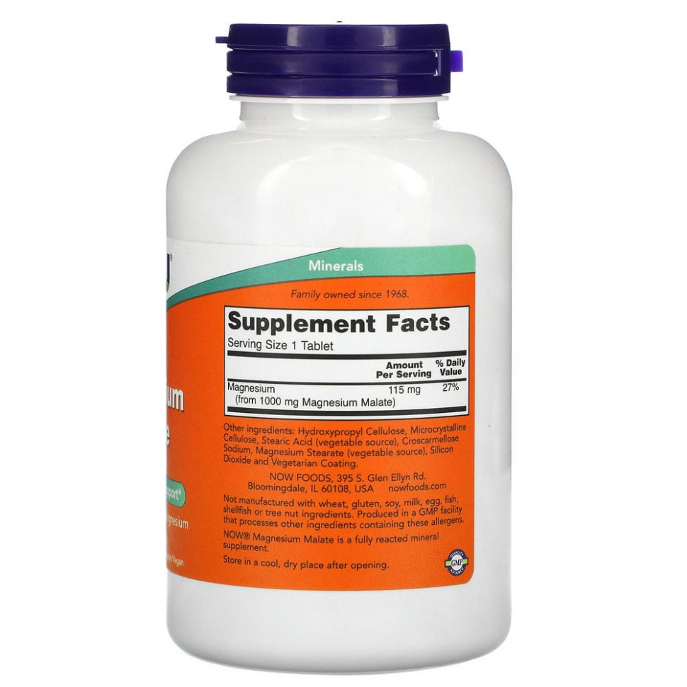 NOW Foods, малат магния 1000 мг, 180 таблеток