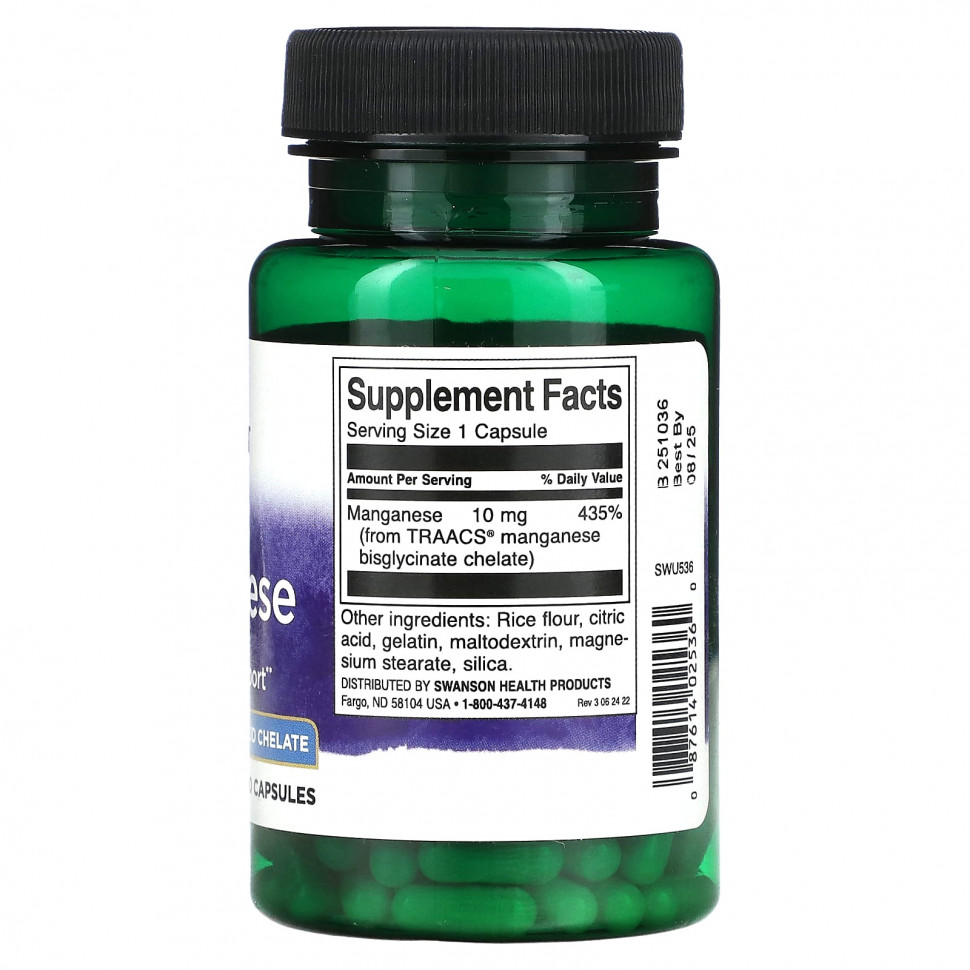 Марганец - микроэлемент, необходимый для обмена веществ и антиоксидантной защиты. Добавка Swanson Albion с хелатным марганцем обеспечивает биодоступную форму этого важного питательного вещества. Марганец - малоизвестный, но важный пищевой минерал. Это важно для правильного роста и поддержания здоровья на протяжении всей жизни. Марганец действует как кофермент, облегчая переваривание и использование углеводов, жиров и белков. Он также играет важную роль в формировании костей и мышечном здоровье. Марганец также важен для оптимального функционирования СОД (супероксиддисмутазы), одного из основных антиоксидантных ферментов организма.
