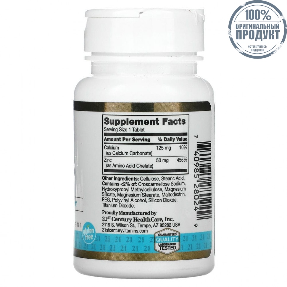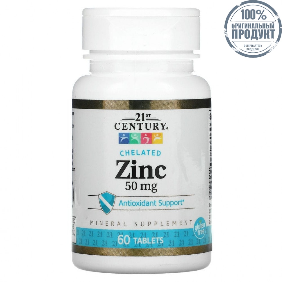 21st Century, хелатный цинк, 50 мг, 60 таблеток