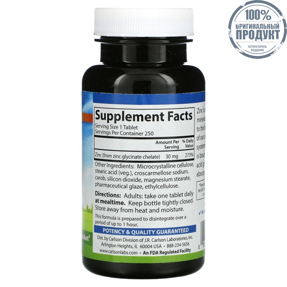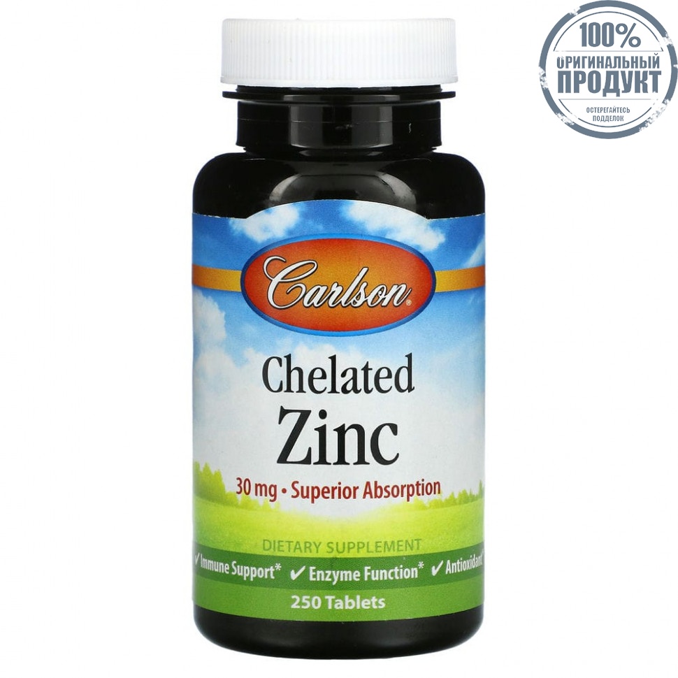 Carlson Labs, Хелатный цинк, 30 мг, 250 таблеток