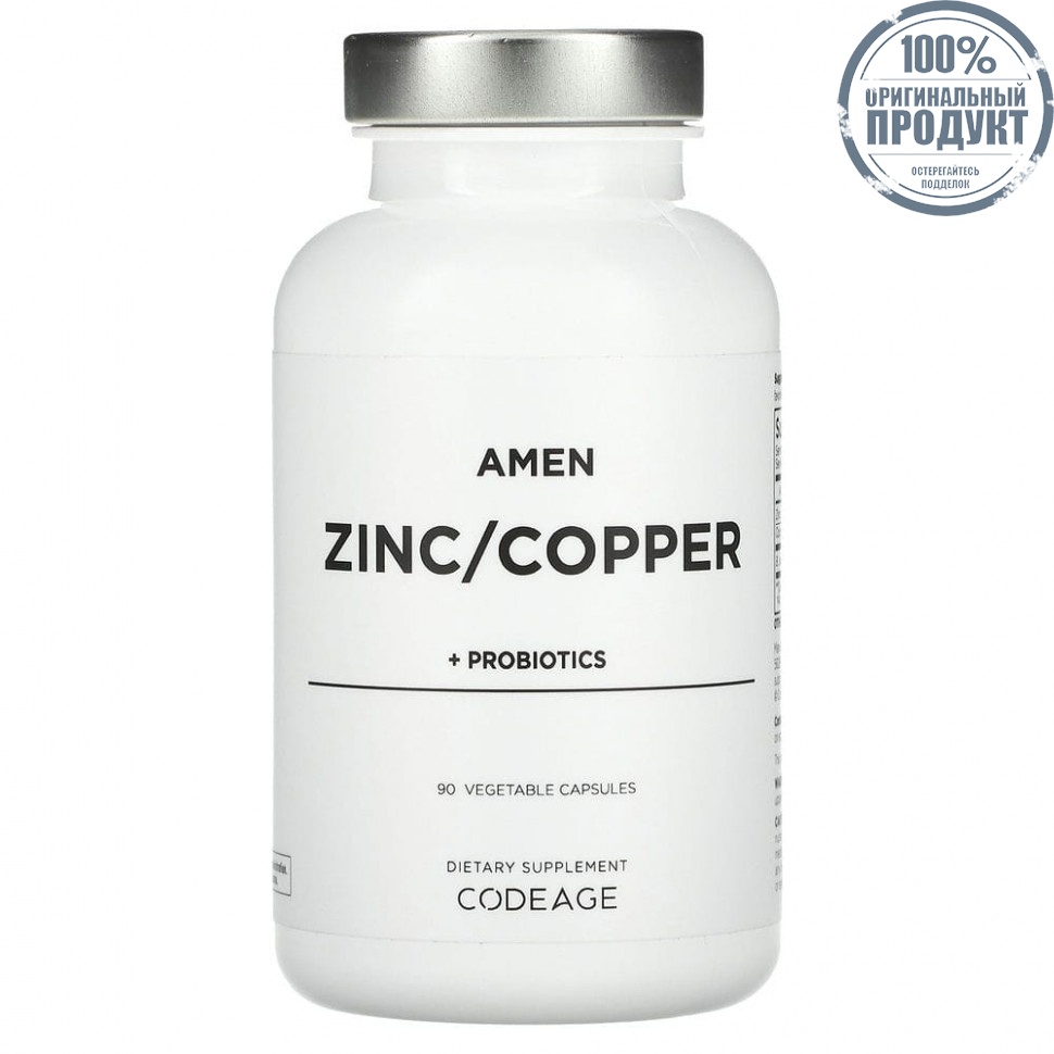 Codeage, Amen, цинк / медь + пробиотики, 90 растительных капсул