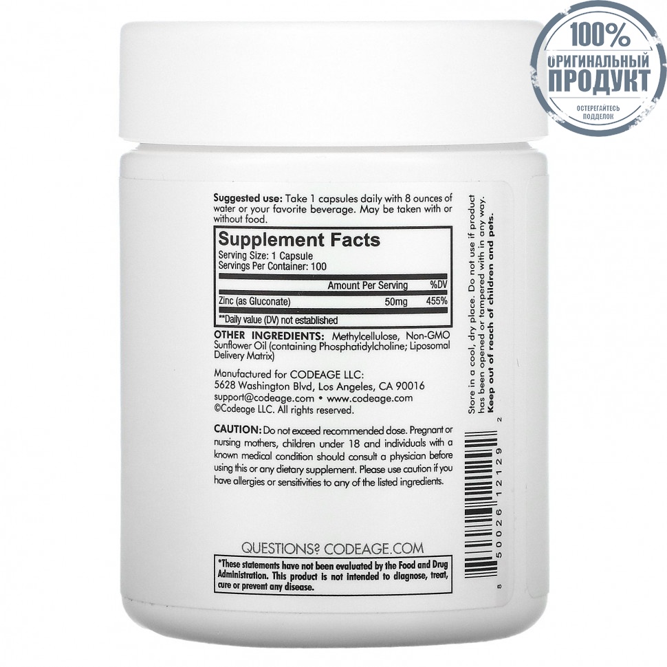 Codeage, Liposomal, цинк 50, 100 капсул