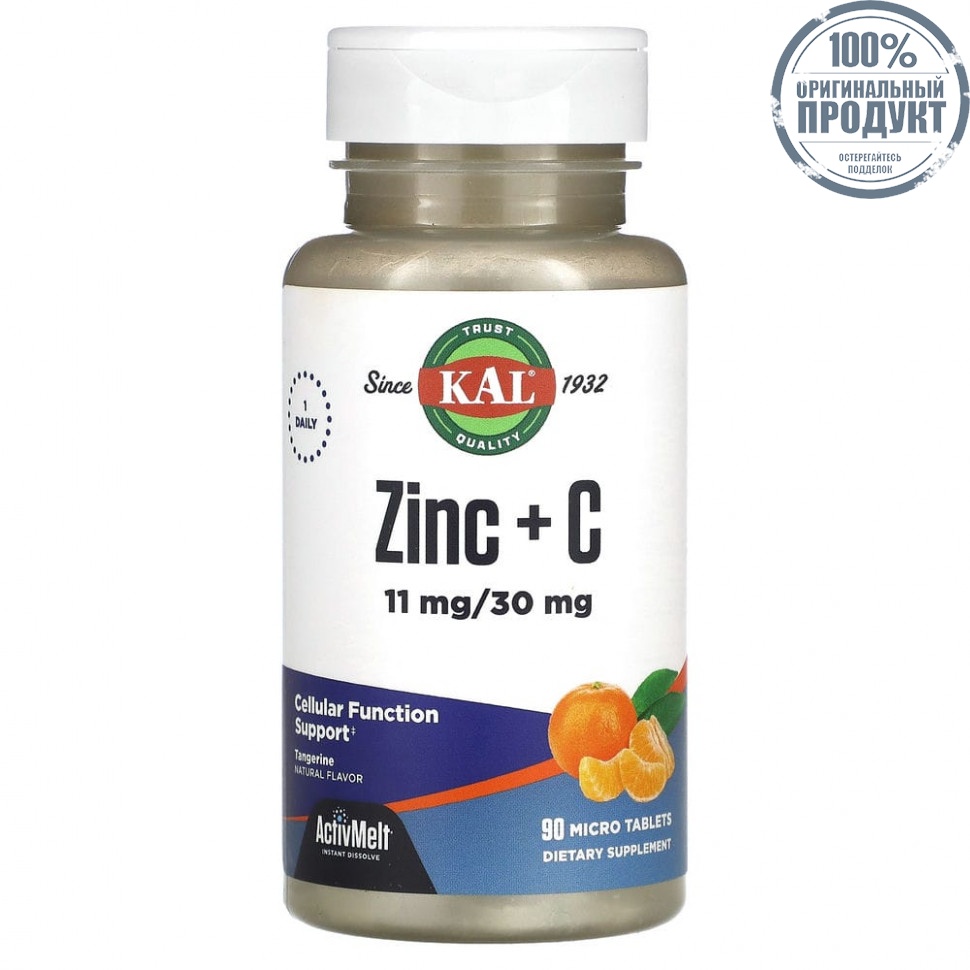 KAL, Цинк + витамин C, мандарин, 90 микротаблеток