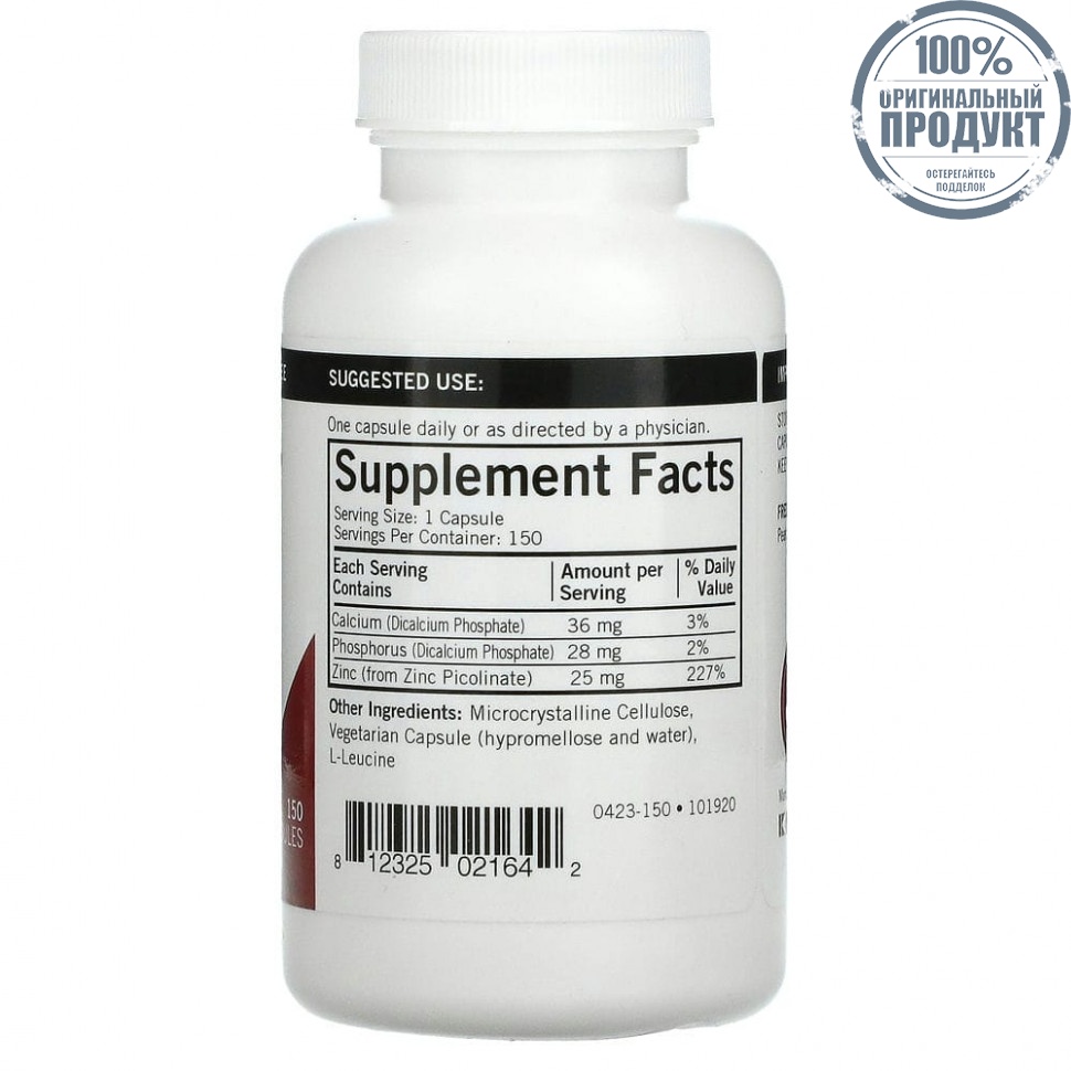Kirkman Labs, пиколинат цинка, 25 мг, 150 капсул