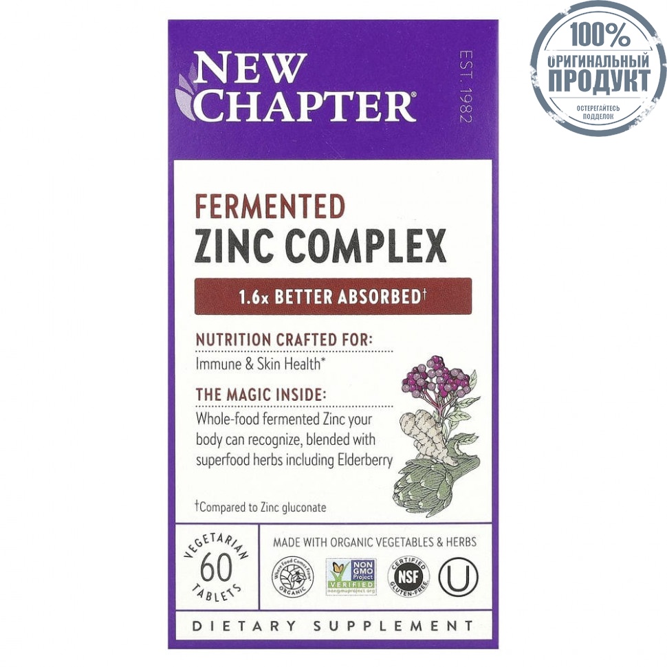 Элемент каталога New Chapter, комплекс ферментированного цинка, 60 вегетарианских таблеток [11517]
