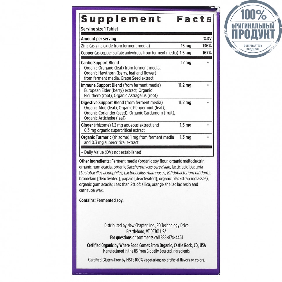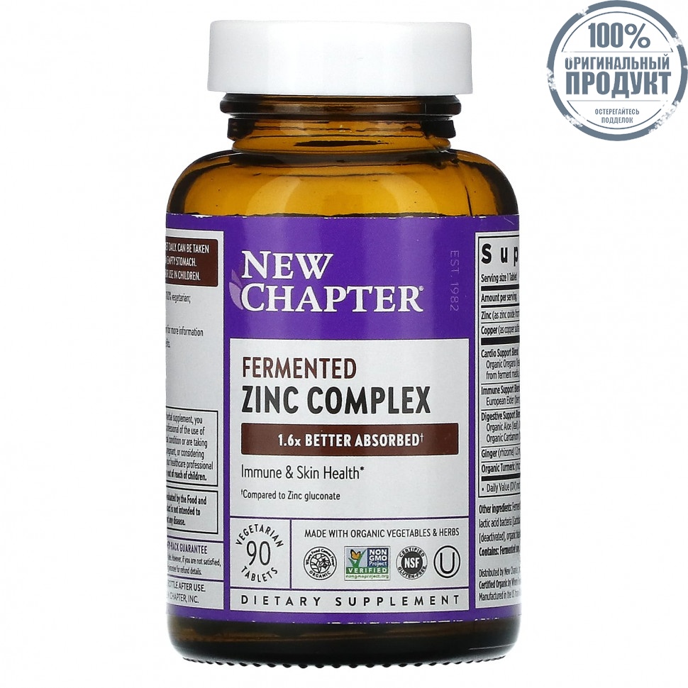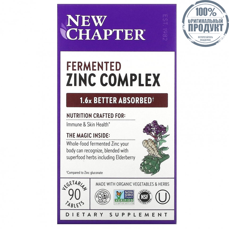 Элемент каталога New Chapter, Комплекс ферментированного цинка, 90 вегетарианских таблеток [11787]