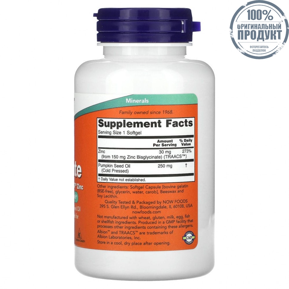 Цинк имеет важнейшее значение для нескольких сотен ферментативных реакций, связанных с метаболизмом белков и углеводов, синтезом РНК и ДНК и межклеточной передачей сигналов. Цинк жизненно необходим для нормального функционирования многих органов и систем организма,поддержки здоровья иммунной, костной, нервной и эндокринной систем организма, а также для здоровья предстательной железы. Цинк, получаемый с пищей, имеет относительно низкую биодоступность, поэтому глицинат цинка от Now производится в хелатной форме для улучшения абсорбции и биодоступности и выпускается в форме капсул, которые легко глотать.
