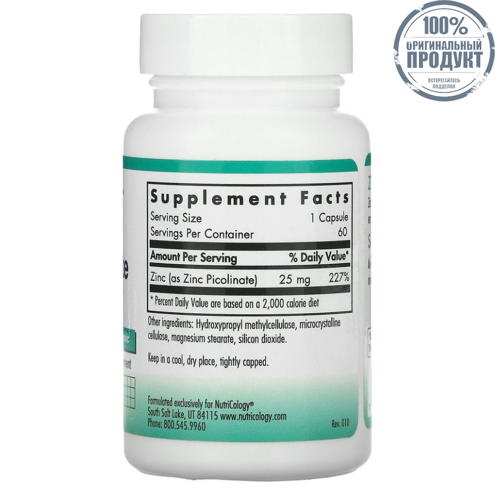 Nutricology, пиколинат цинка, 60 вегетарианских капсул