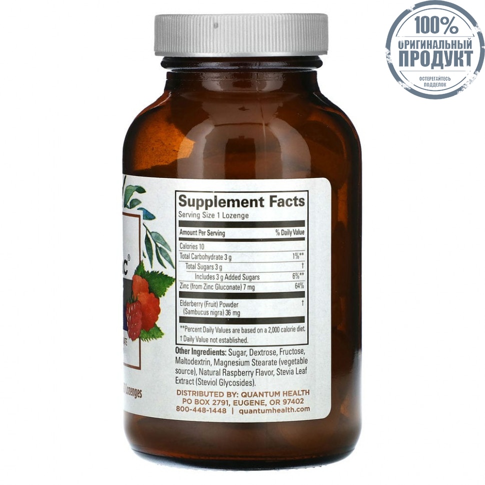 Quantum Health, TheraZinc, бузина, малина, 60 пастилок