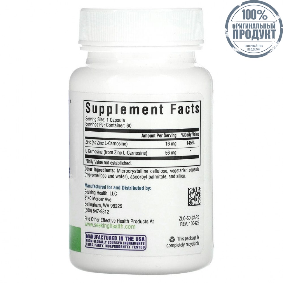 Seeking Health, Цинк карнозин, 60 вегетарианских капсул