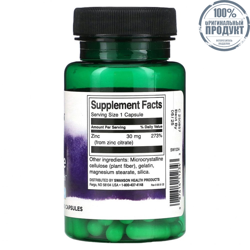 Элемент каталога Swanson, Цитрат цинка, 30 мг, 60 капсул [16348]