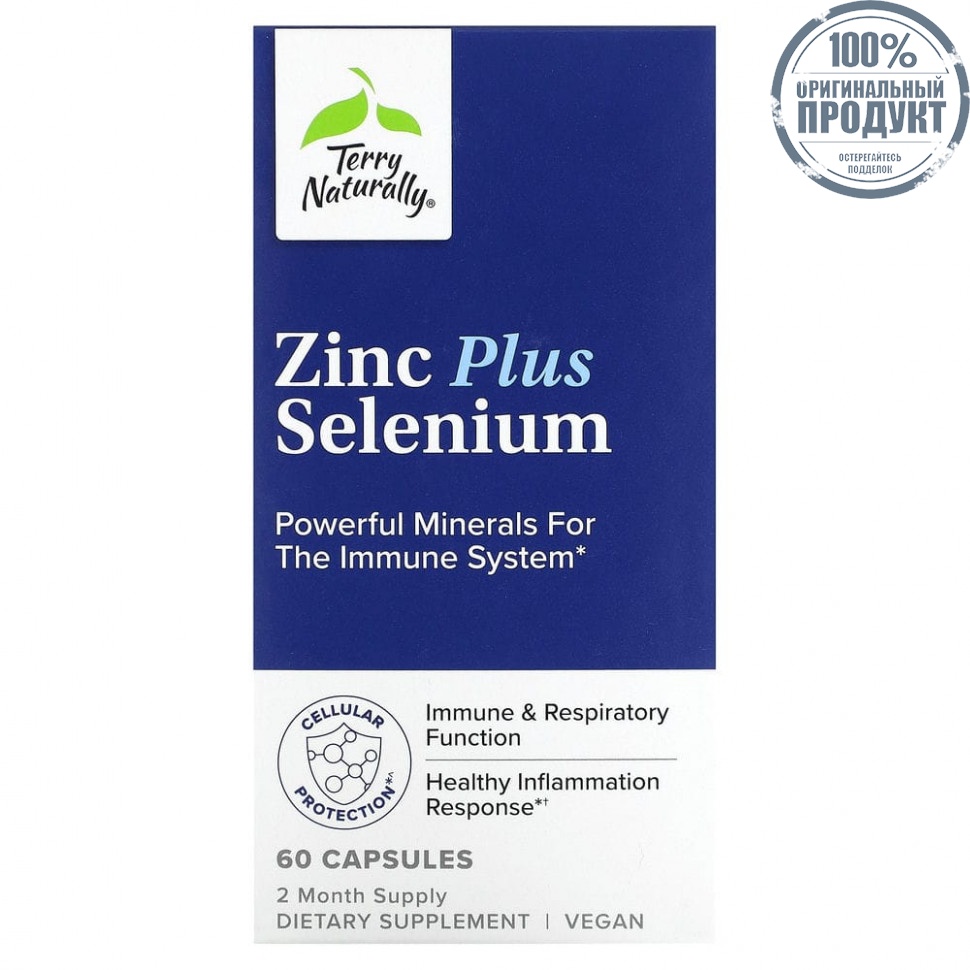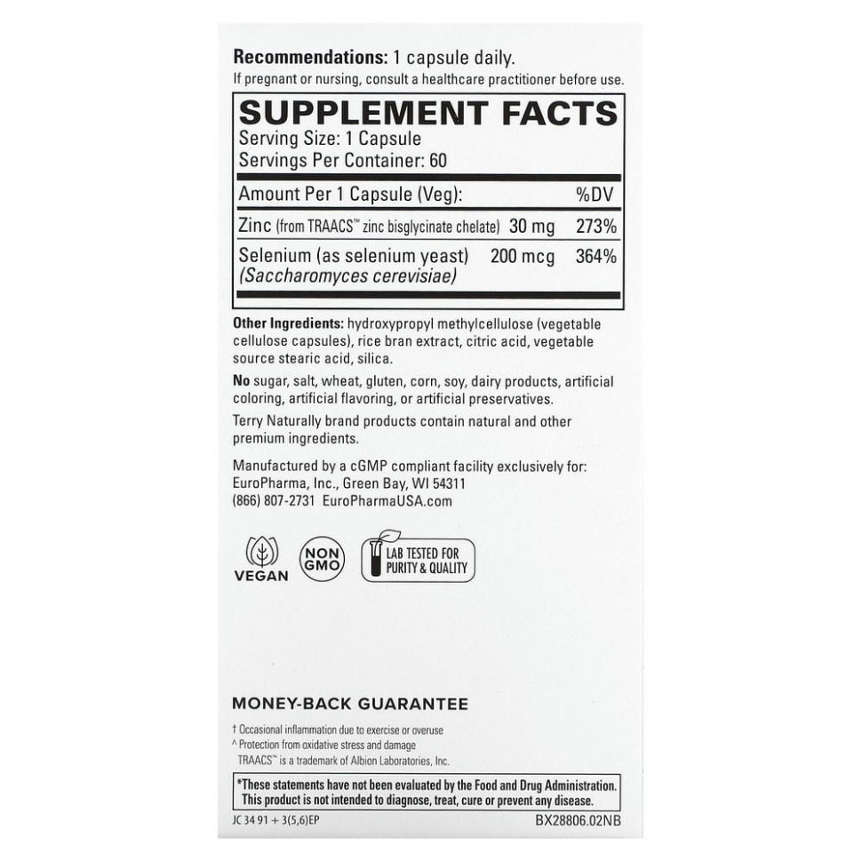 Terry Naturally, цинк и селен, 60 веганских капсул