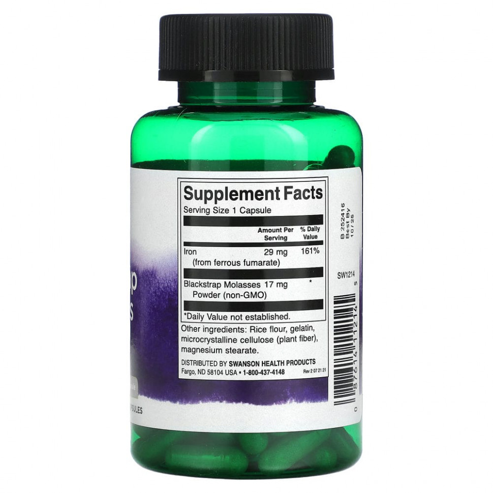 Swanson, Черная патока с железом, 120 капсул
