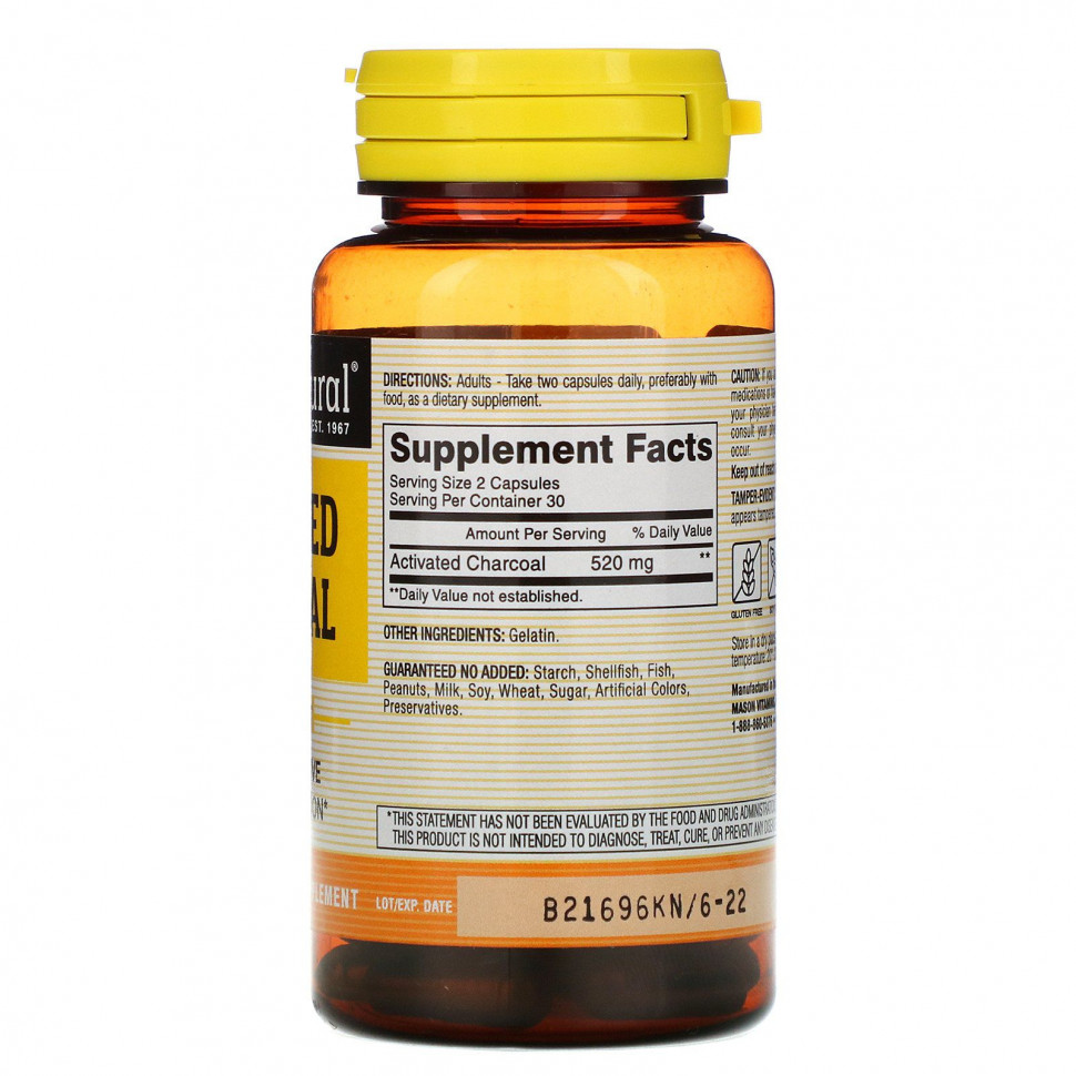Mason Natural, активированный уголь, 60 капсул