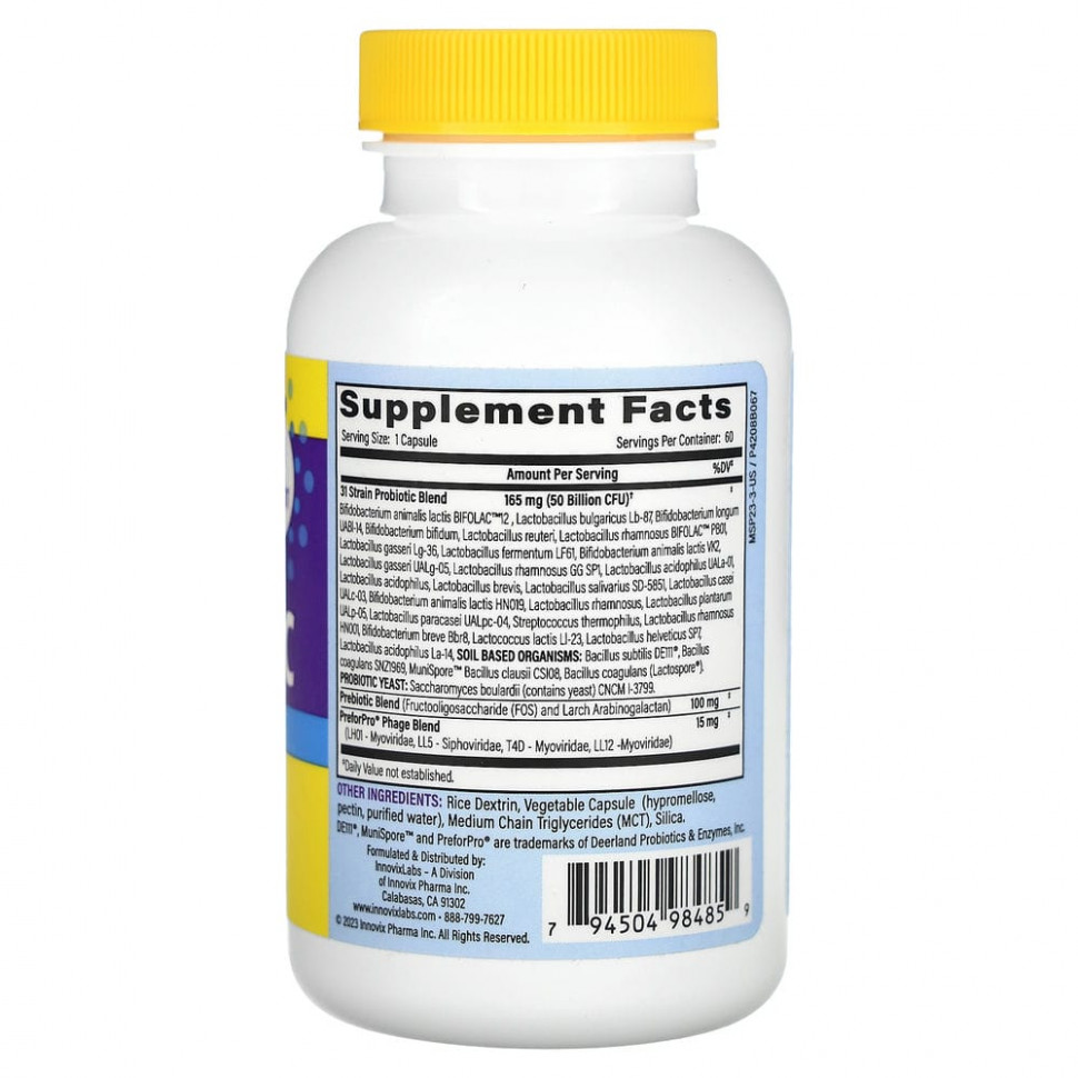InnovixLabs, мультиштаммовый пробиотик, 50 млрд, 60 капсул