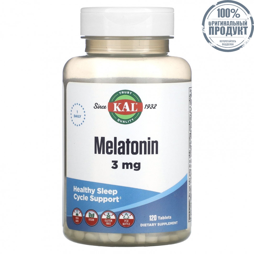 Элемент каталога KAL, Malatonin, 3 mg, 120 Tablets [24783]
