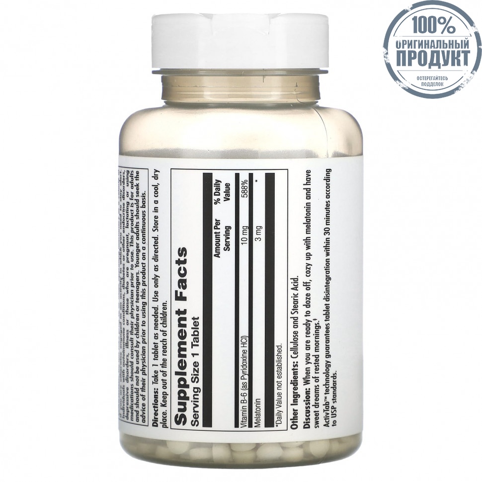 Информация о добавкахServing Size: 1 Tablet Amount Per Serving%Daily ValueVitamin B-6 (as Pyridoxine HCI)10 mg588% Melatonin3 mg * *Daily Value not established.