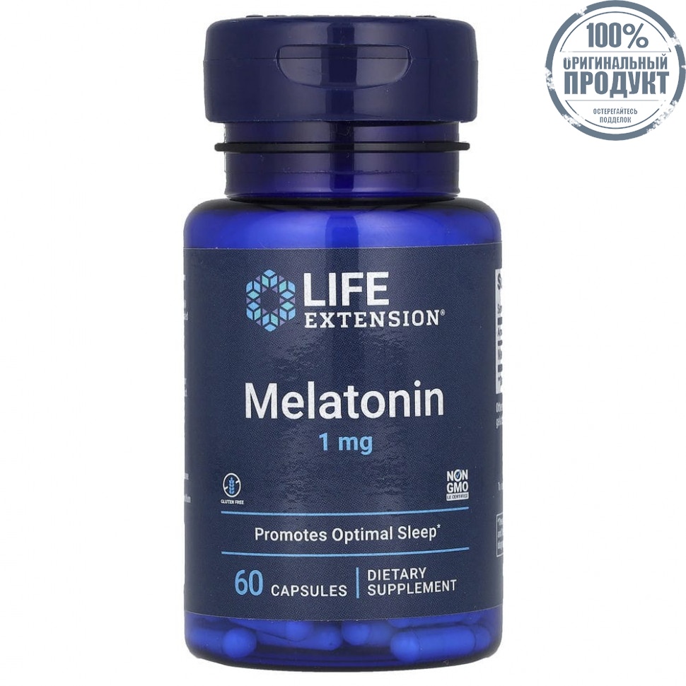 Life Extension, мелатонин, 1 мг, 60 капсул