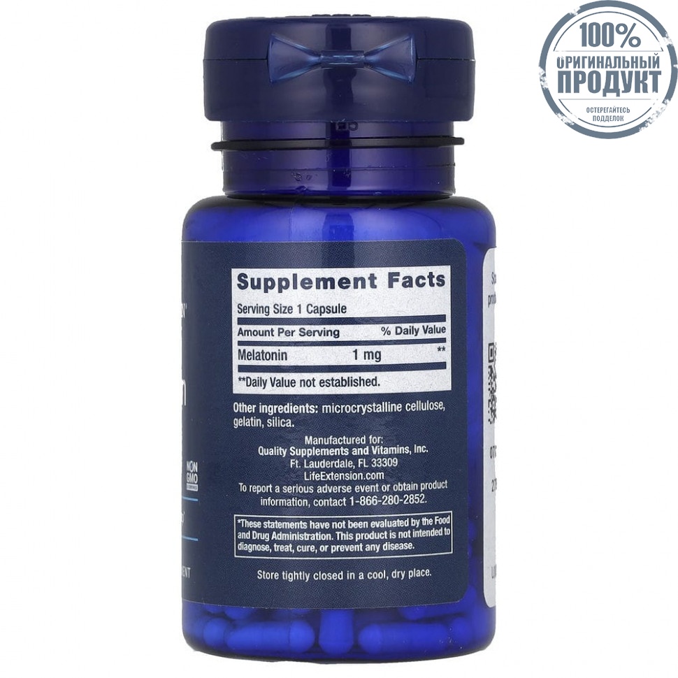 Элемент каталога Life Extension, мелатонин, 1 мг, 60 капсул [14198]