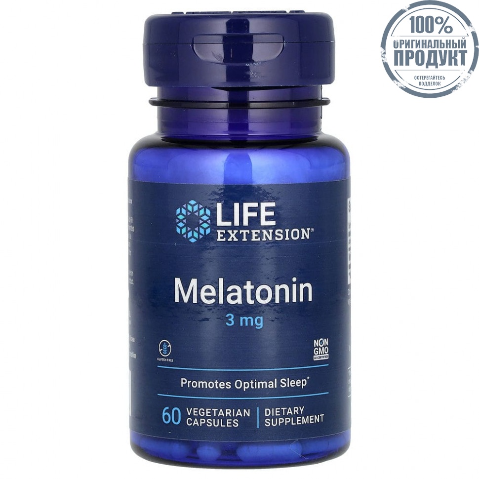 Life Extension, Мелатонин, 3 мг, 60 вегетарианских капсул