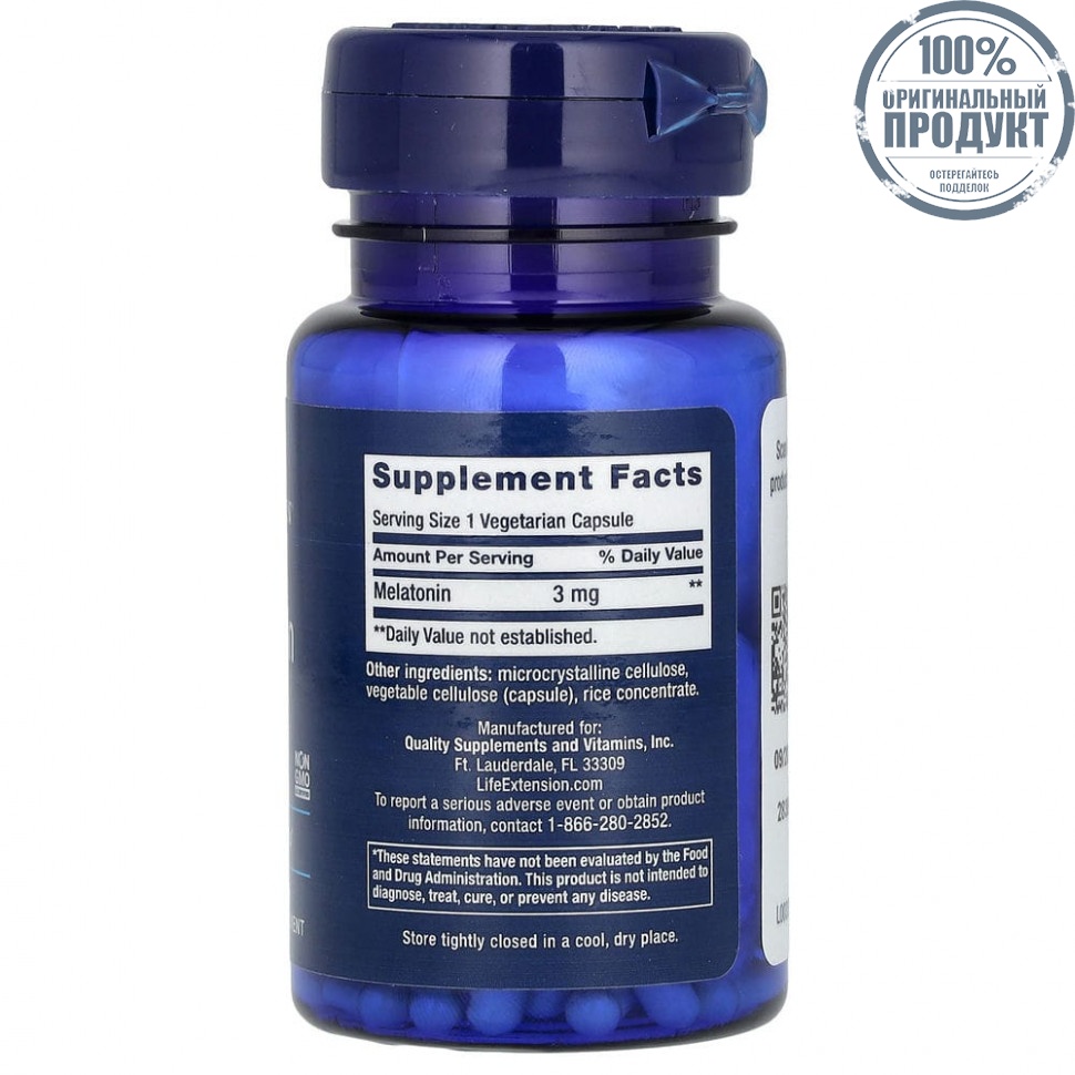 Элемент каталога Life Extension, Мелатонин, 3 мг, 60 вегетарианских капсул [12039]