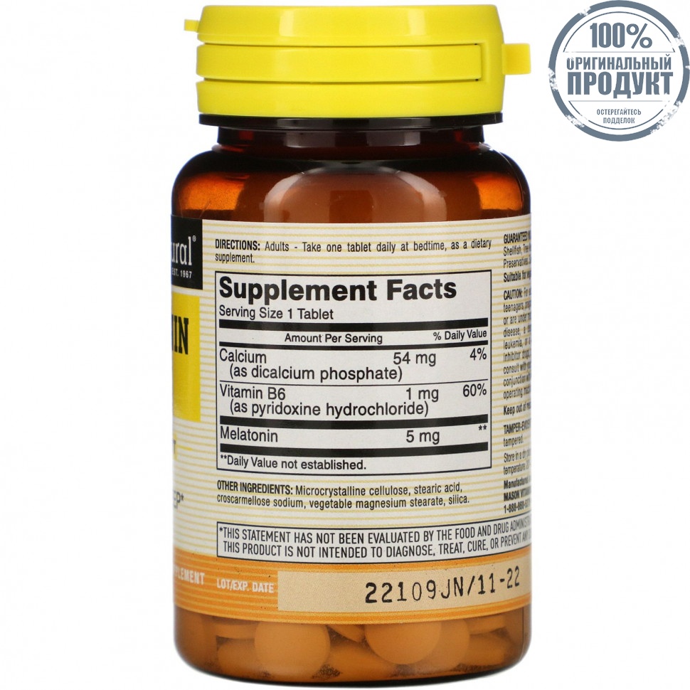 Mason Natural, Мелатонин, 5 мг, 60 таблеток [19149]