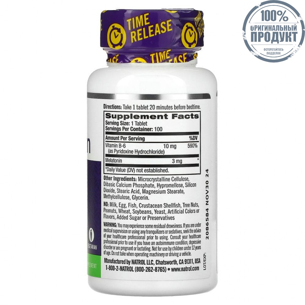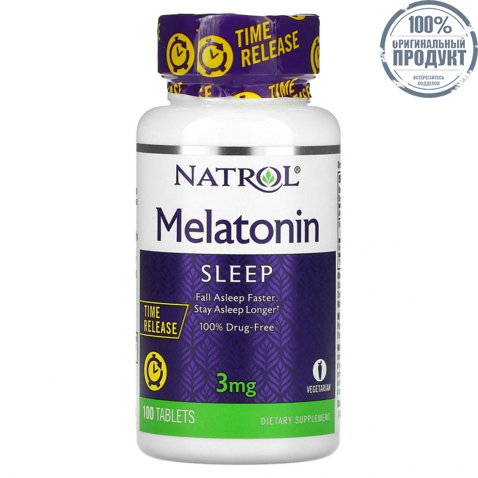 Элемент каталога Natrol, Мелатонин, медленное высвобождение, 3 мг, 100 таблеток [9775]
