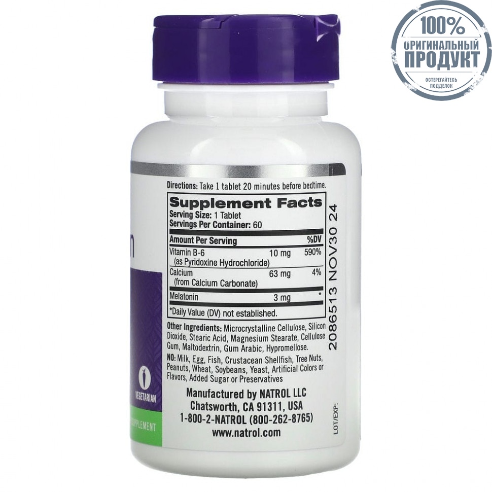 Элемент каталога Natrol, Melatonin (Мелатонин), 3 мг, 60 таблеток [8902]