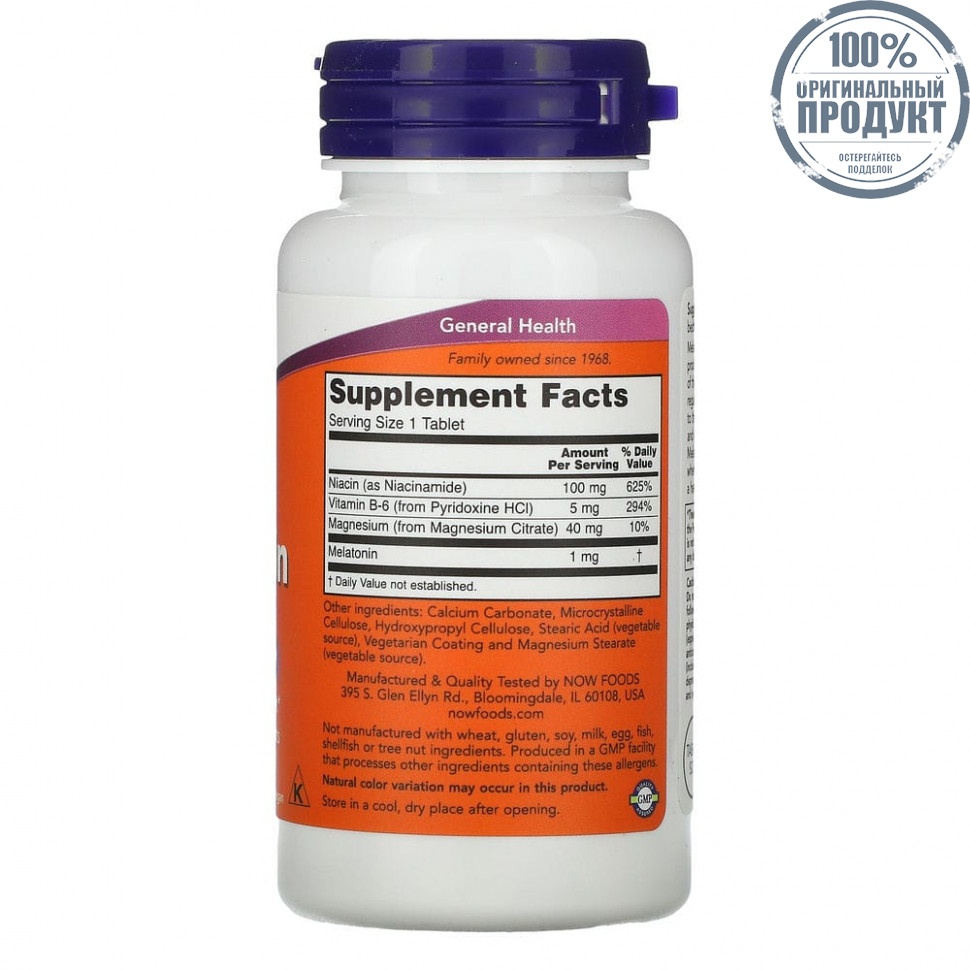 Элемент каталога NOW Foods, Мелатонин, 1 мг, 100 таблеток [10648]