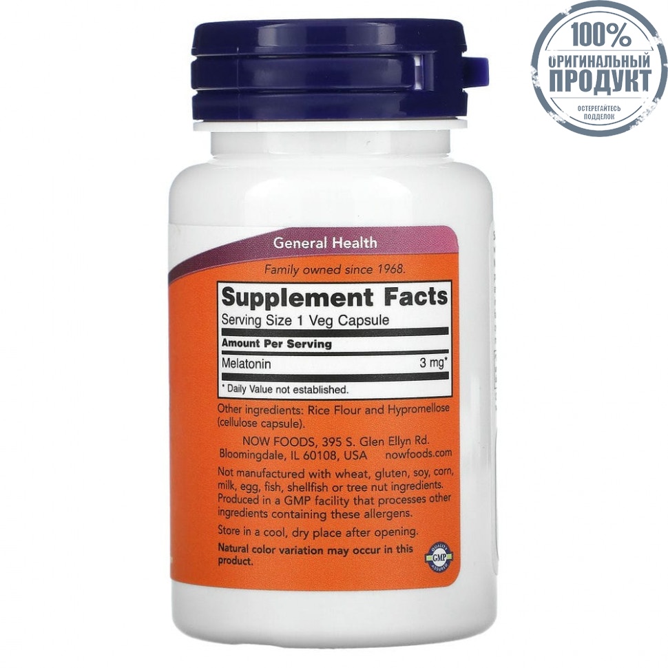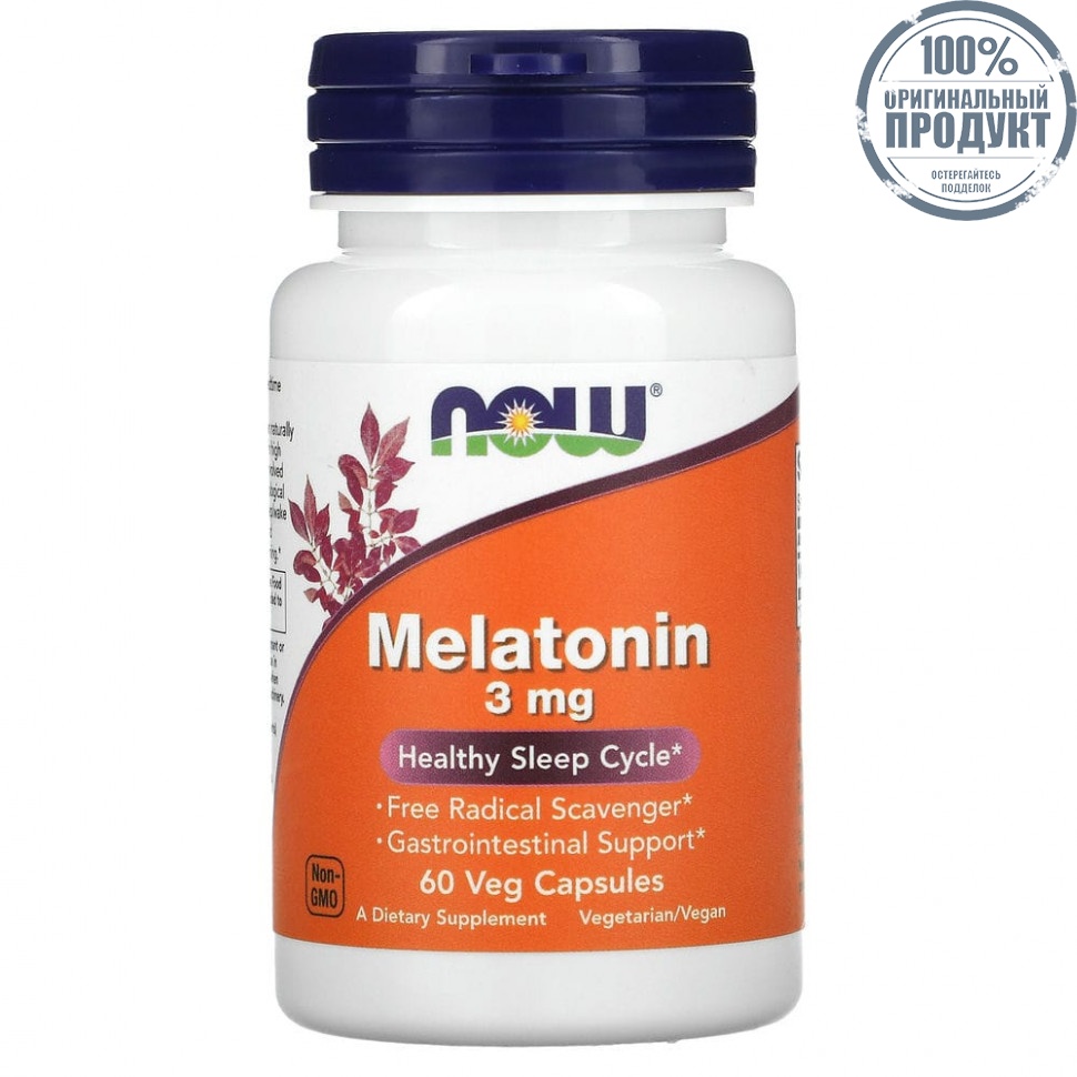 NOW Foods, мелатонин, 3 мг, 60 растительных капсул [7783]