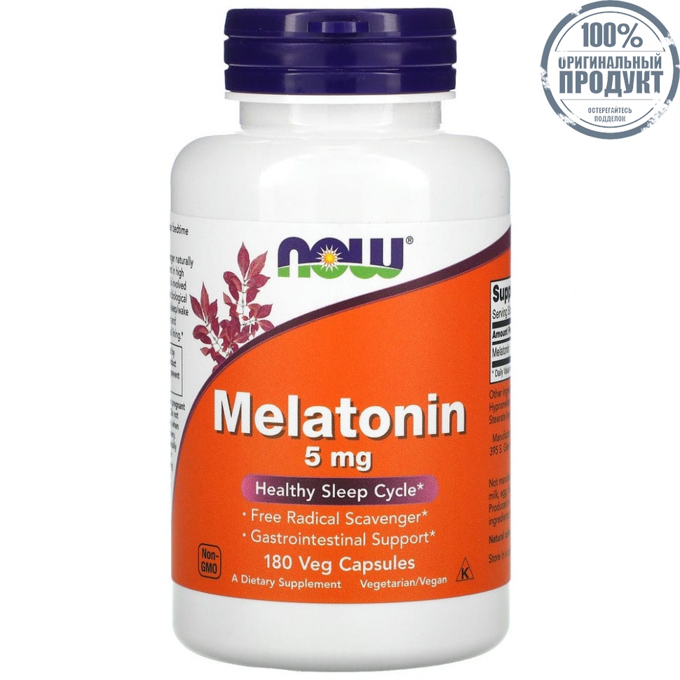 NOW Foods, мелатонин, 5 мг, 180 растительных капсул [5402]