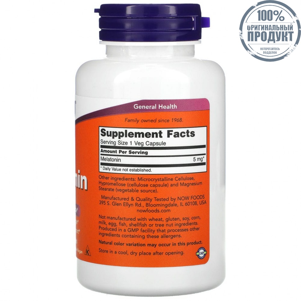 Элемент каталога NOW Foods, мелатонин, 5 мг, 180 растительных капсул [5402]