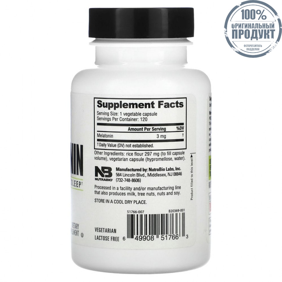 Nutrabio Labs, Мелатонин, 3 мг, 120 капсул