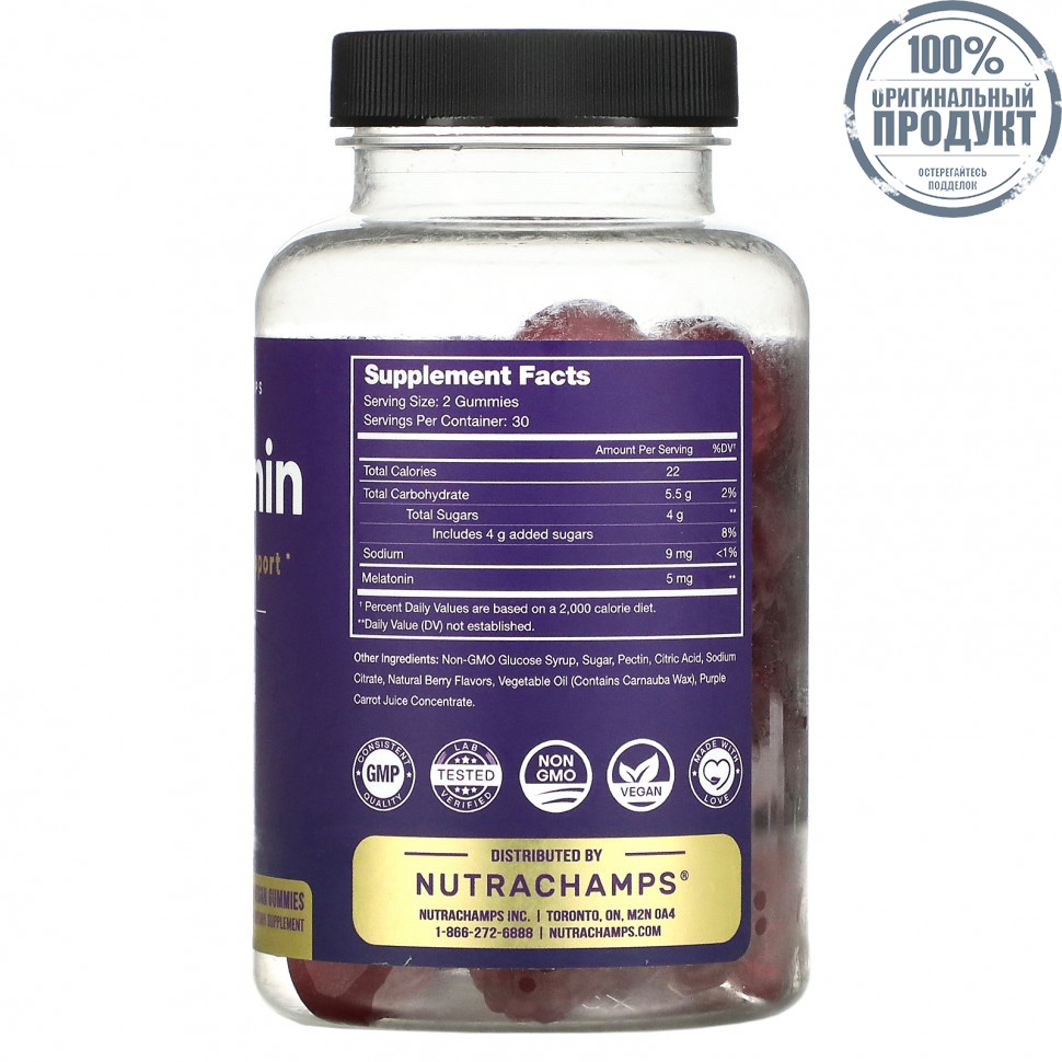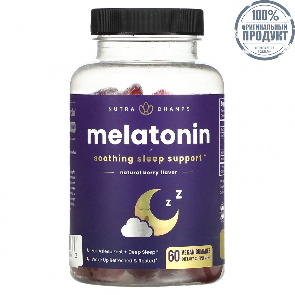 NutraChamps, Мелатонин, натуральные ягоды, 60 веганских жевательных таблеток