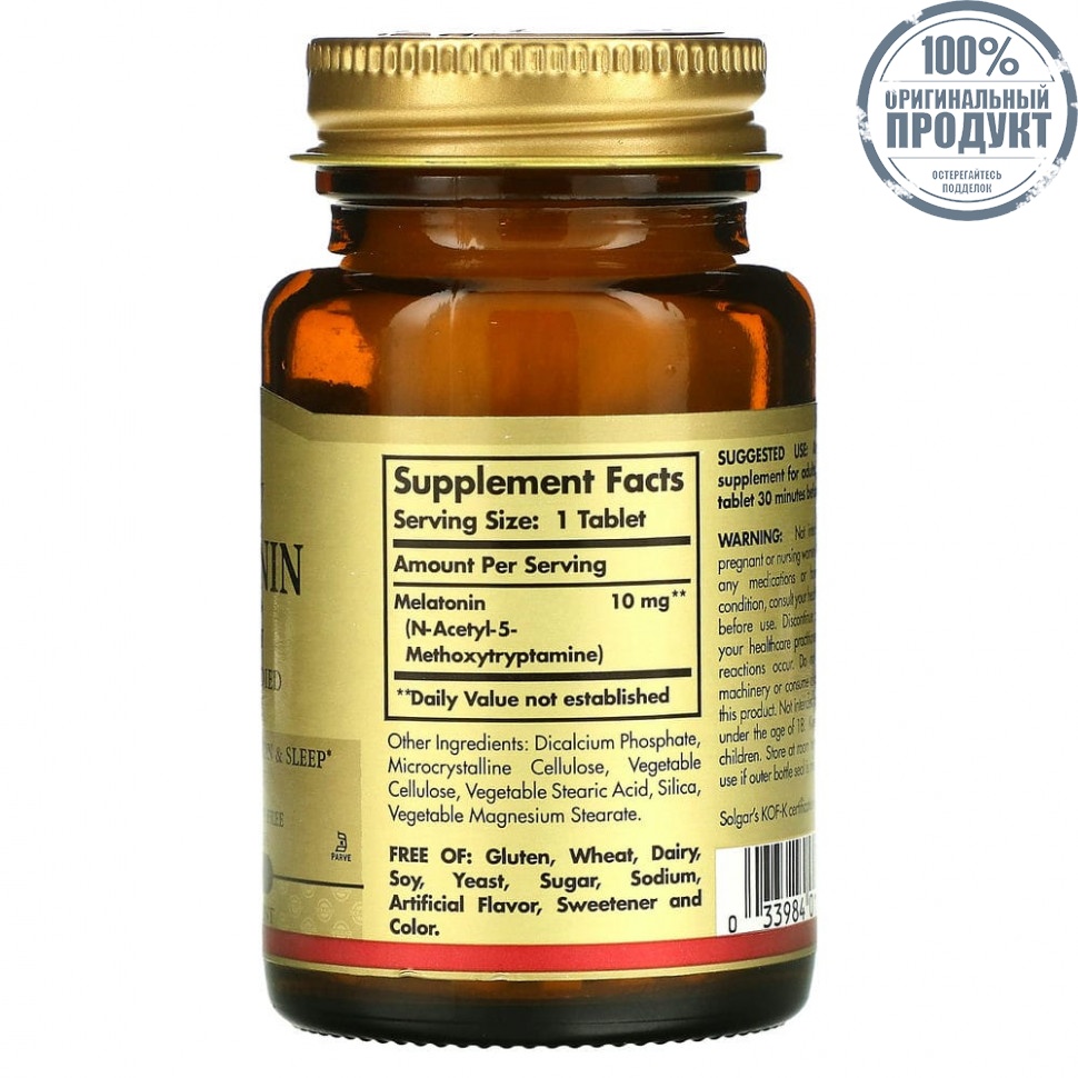 Мелатонин от Solgar (10 мг, в таблетках) — это отличный выбор для людей, страдающих эпизодической бессонницей, проблемами, связанными с резкой сменой часовых поясов, а также для тех, кто хочет обеспечить себе полноценный здоровый сон. Этот продукт работает с вашим естественным циклом сна и обеспечивает спокойный отдых, которого вы заслуживаете. Вы проснетесь бодрыми и наполненными сил.
