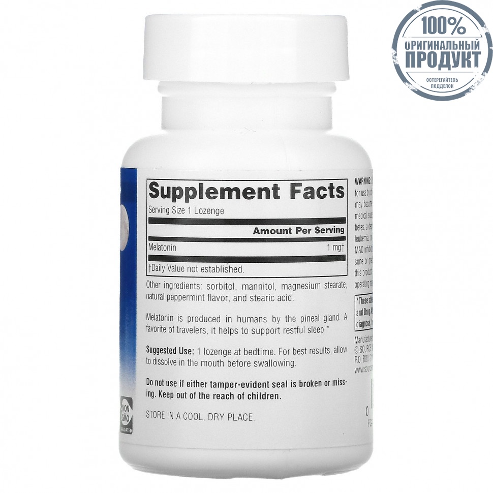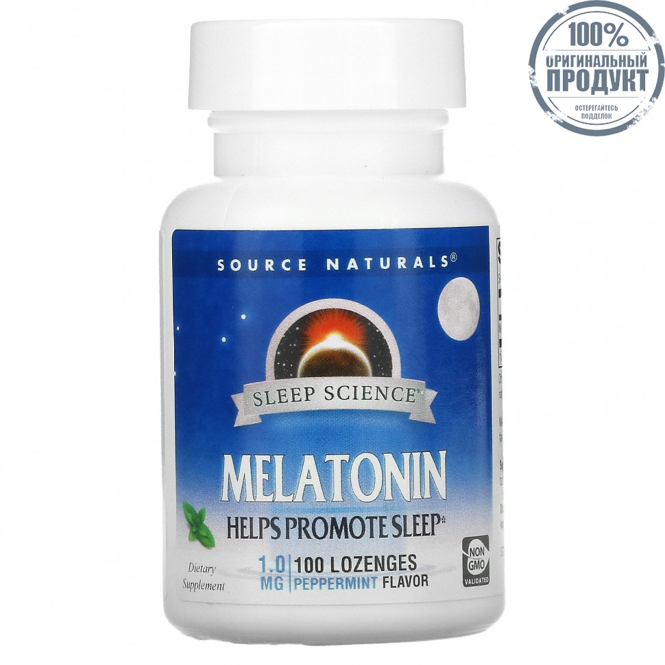 Элемент каталога Source Naturals, Мелатонин, мята, 1 мг, 100 пастилок [20608]