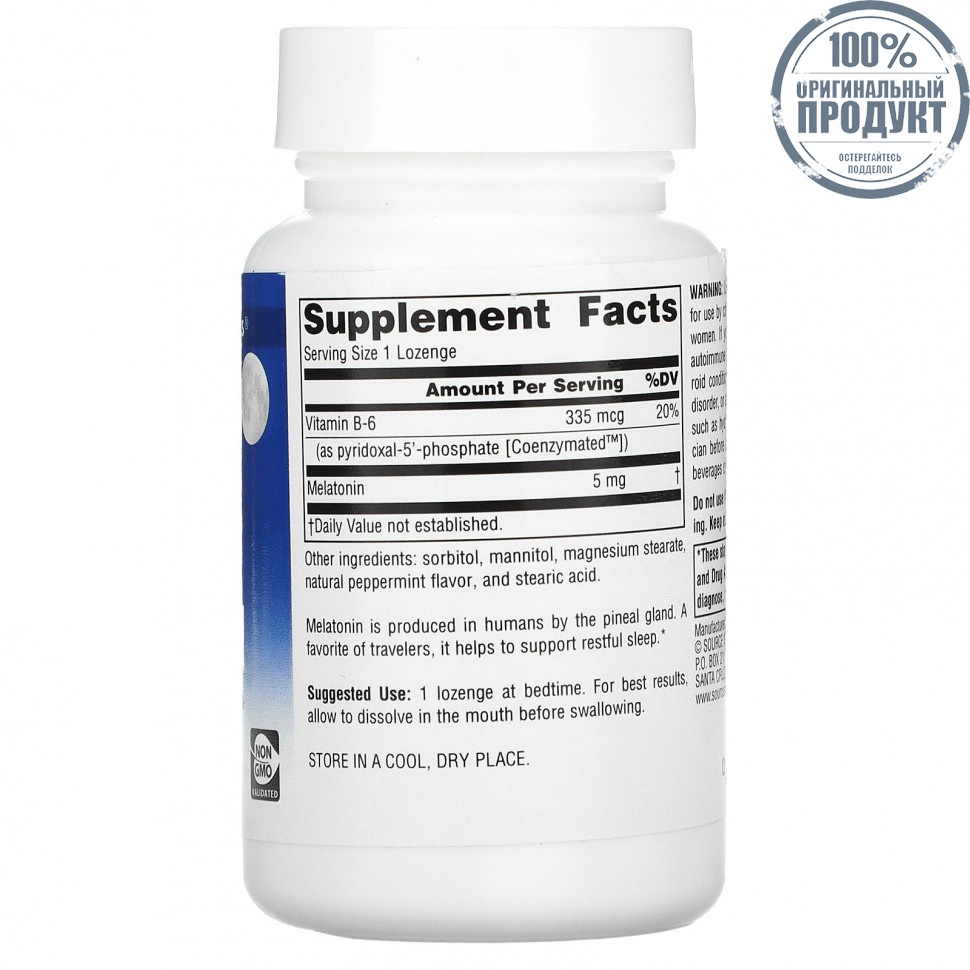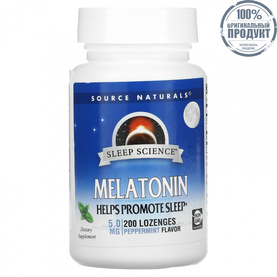 Элемент каталога Source Naturals, Мелатонин, мята, 5 мг, 200 пастилок [21206]