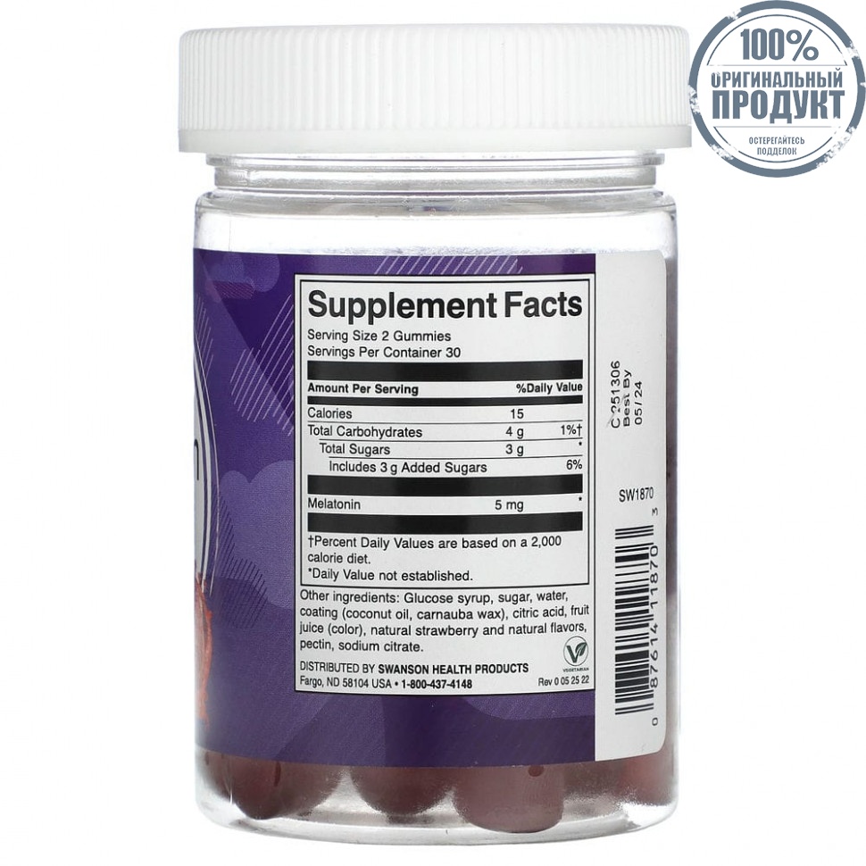 Swanson, Мелатонин, клубника, 60 жевательных таблеток