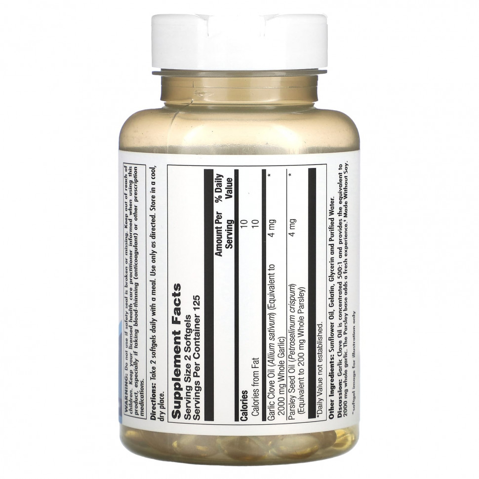Описание. Масло гвоздичного чеснока имеет концентрацию 500: 1, эквивалентную 2000 мг цельного чеснока. База из петрушки добавляет ощущения свежести.