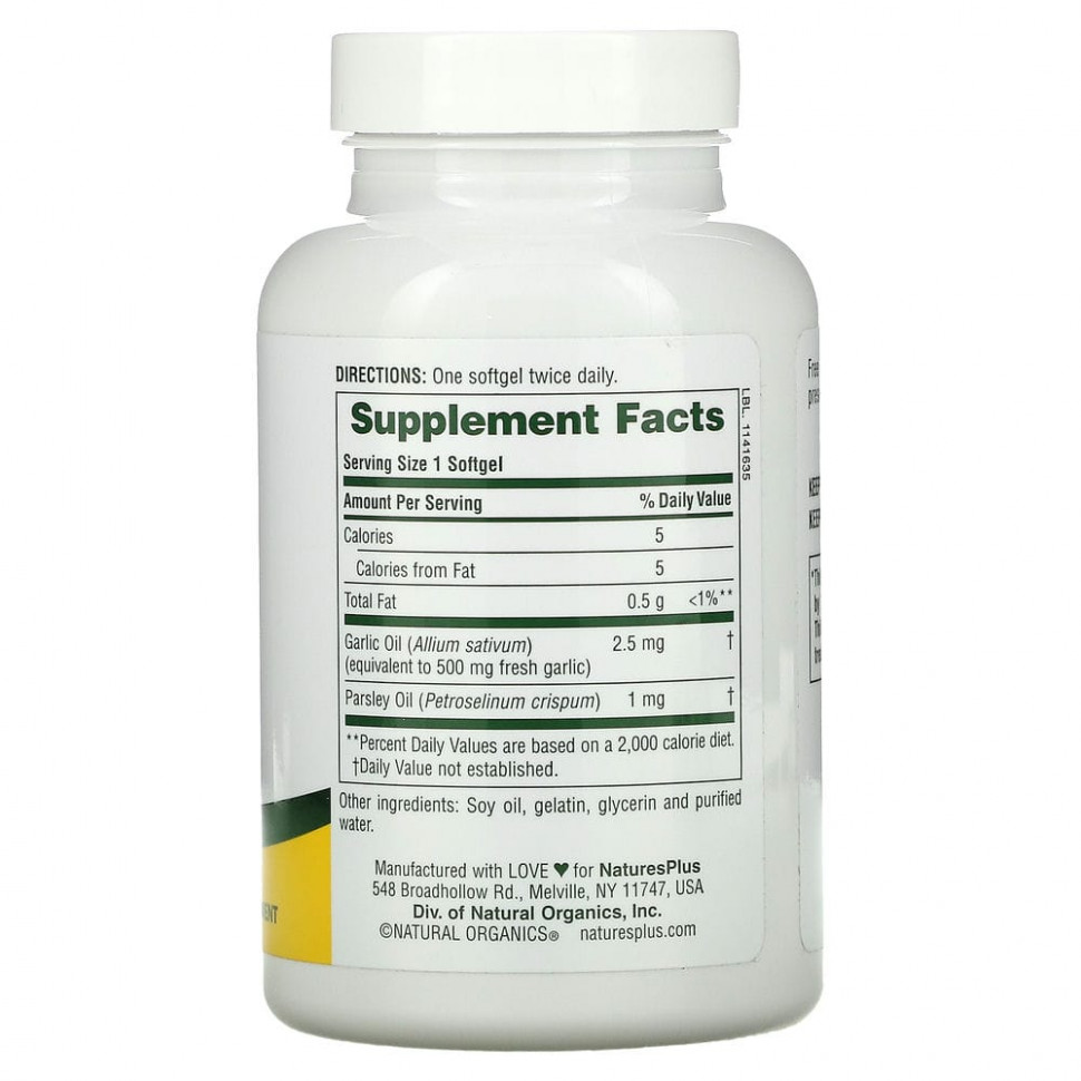 NaturesPlus, масло чеснока и петрушки, 180 капсул
