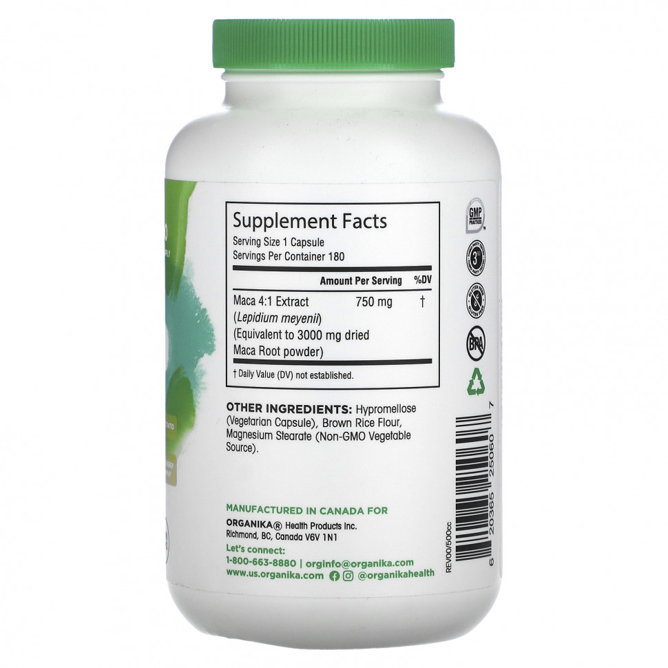 Organika, MACA, 750 mg, 180 Vegetarian Capsules